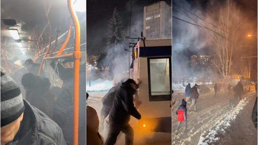 Из-за наледи на дороге: в столице троллейбус с пассажирами задымился прямо на ходу