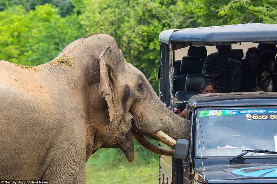 (ВИДЕО) На Шри-Ланке слониха напала на машину туристов и украла у них еду