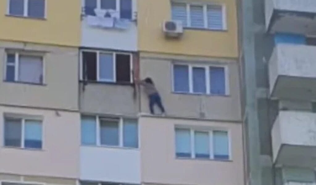 (ВИДЕО) Балансировала на карнизе и могла упасть: жительница многоэтажки на Рышкановке заставила соседей поволноваться
