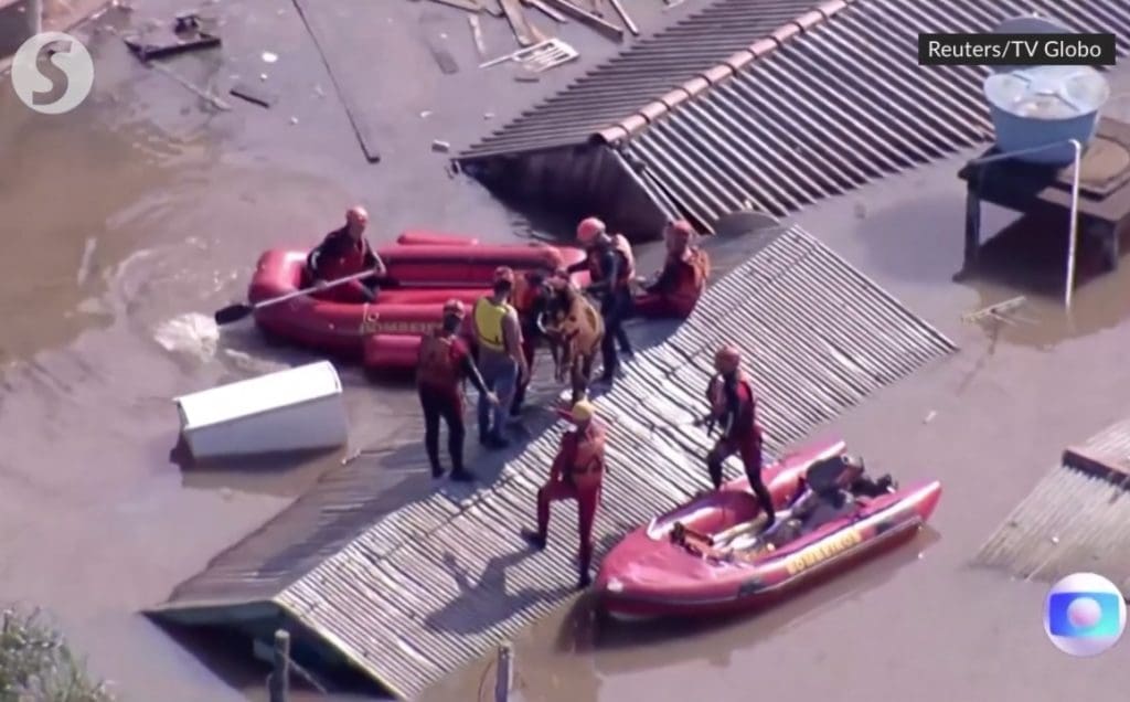 (ВИДЕО) В Бразилии спасли лошадь, застрявшую на крыше дома из-за наводнения