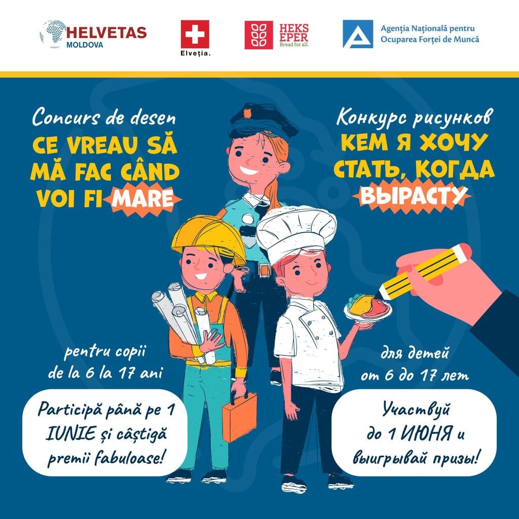 Helvetas Moldova подготовила специальный конкурс рисунков для детей от 6 до 17 лет, где за визуализацию своей мечты можно можно получить ценные призы. «Ребёнок, поддержанный в своих мечтах, становится успешным взрослым. В стремлении поддержать детские мечты творчески, мы подготовили специальный конкурс рисунков на тему «Кем я хочу стать, когда вырасту»! Если тебе от 6 до […]