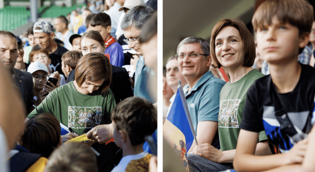 (ФОТО) «Вперед, Молдова!»: Майя Санду посетила товарищеский матч между сборными Молдовы и Украины
