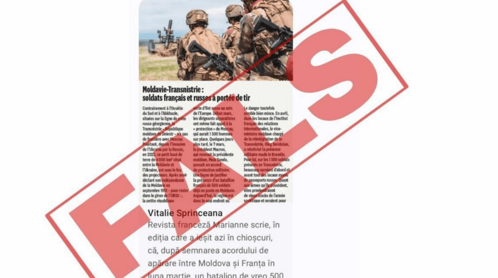 Министерство обороны Республики Молдова предупреждает о появлении новой фейковой новости, которая распространяется через Telegram-каналы со ссылкой на французский журнал. «Согласно распространяемой информации, в нашей стране якобы дислоцированы 500 французских военнослужащих. Министерство Обороны сообщает, что это провокационная и манипулятивная дезинформация и призывает граждан информироваться только из официальных и надежных источников», -заявили в Минобороны. Ранее Министерство обороны […]