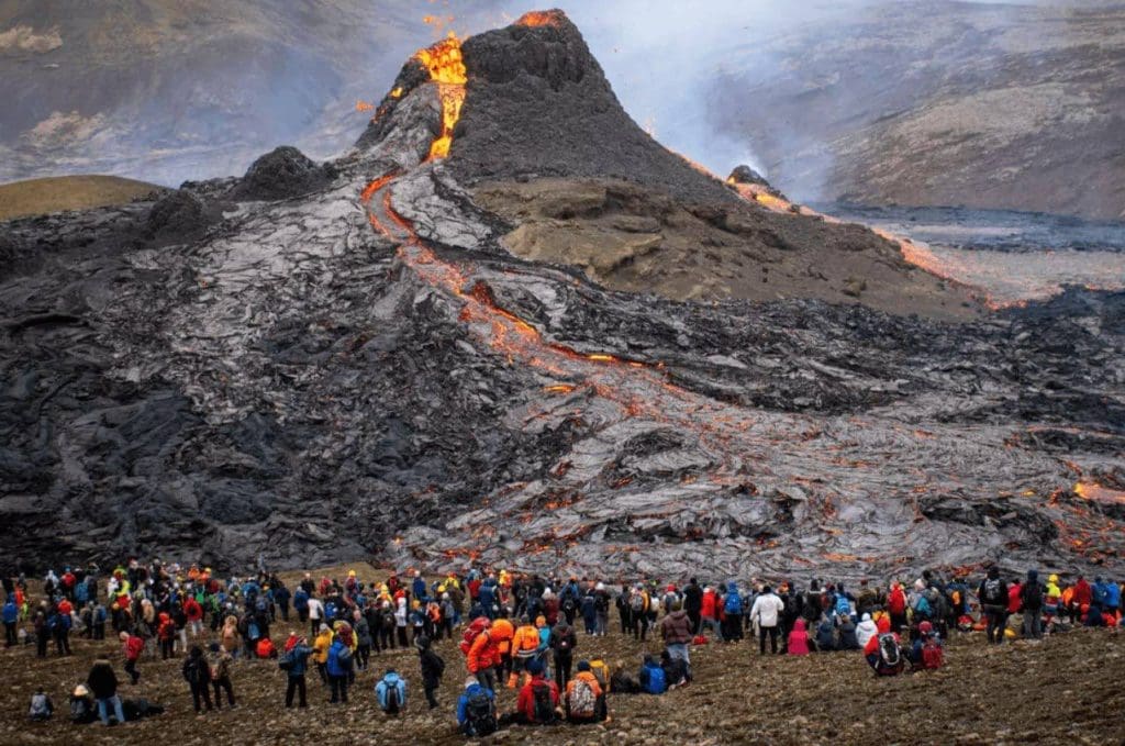 (ФОТО/ВИДЕО) «Пол — это лава»: в Исландии при извержении вулкана раскаленная лава затопила главную дорогу