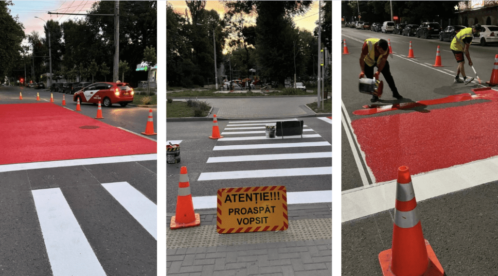 (ФОТО) «Красная дорожка» в Кишиневе: в столице появилась новая дорожная разметка