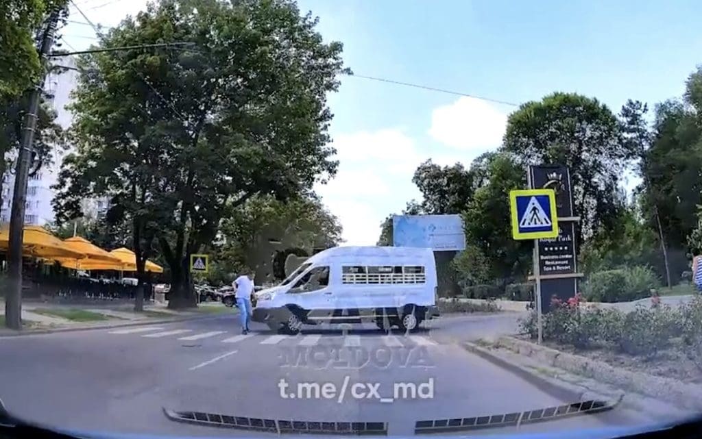 (ВИДЕО) В Кишиневе микроавтобус сбил человека на пешеходном переходе