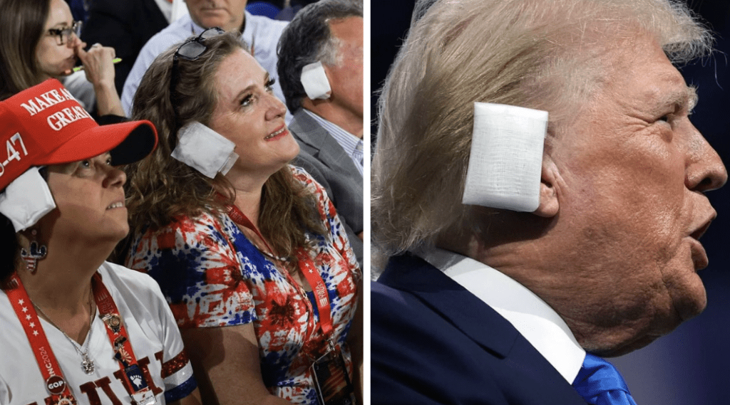 Американские делегаты на съезде Республиканской партии запустили новый тренд: повязки на ухо, похожие на ту, что носит экс-лидер США Дональд Трамп после покушения. Об этом сообщает издание ВСС. Делегат из Аризоны Джо Нелья назвал такой аксессуар «новейшей модной тенденцией». Напомним, что покушение на экс-президента произошло 14 июля. Дональд Трамп выступал перед сторонниками в штате Пенсильвания, […]