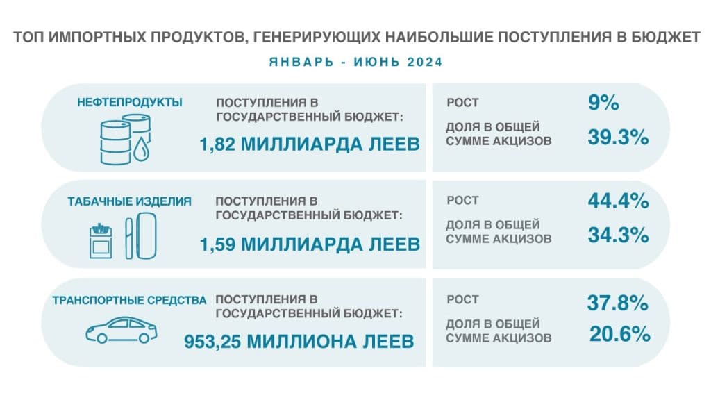 В первой половине 2024 года, по данным Таможенной службы, поступления в государственный бюджет превысили 17,7 млрд леев — на 8% больше, чем за аналогичный период прошлого года. Наибольшая доля пришлась на НДС — свыше 67%, далее следуют акцизы — 26%, и таможенные пошлины — 6%, пишет Moldstreet. Согласно данным, опубликованным Таможенной службой, поступления в бюджет […]