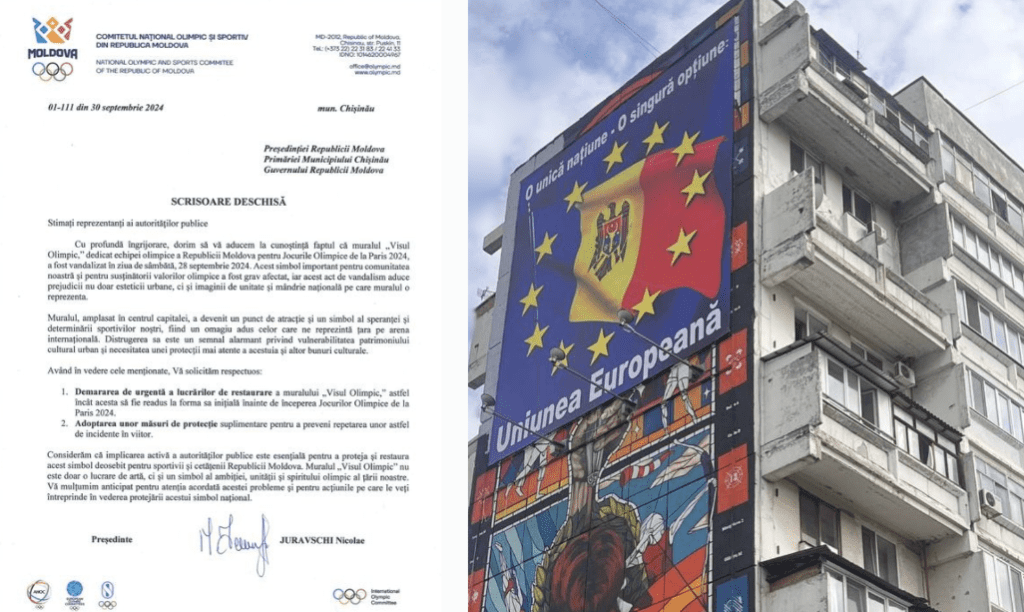 Мурал «Олимпийская мечта», посвященный молдавским спортсменам, участвовавшим в Олимпийских играх в Париже, попытались закрасить, а позже повесили на его месте рекламу. Национальный олимпийский комитет направил письмо президенту, правительству и мэрии Кишинева с просьбой восстановить и сохранить мурал, посвященный молдавским спортсменам. «Это важный символ для нашего сообщества и сторонников олимпийских ценностей был серьезно поврежден, данный акт […]