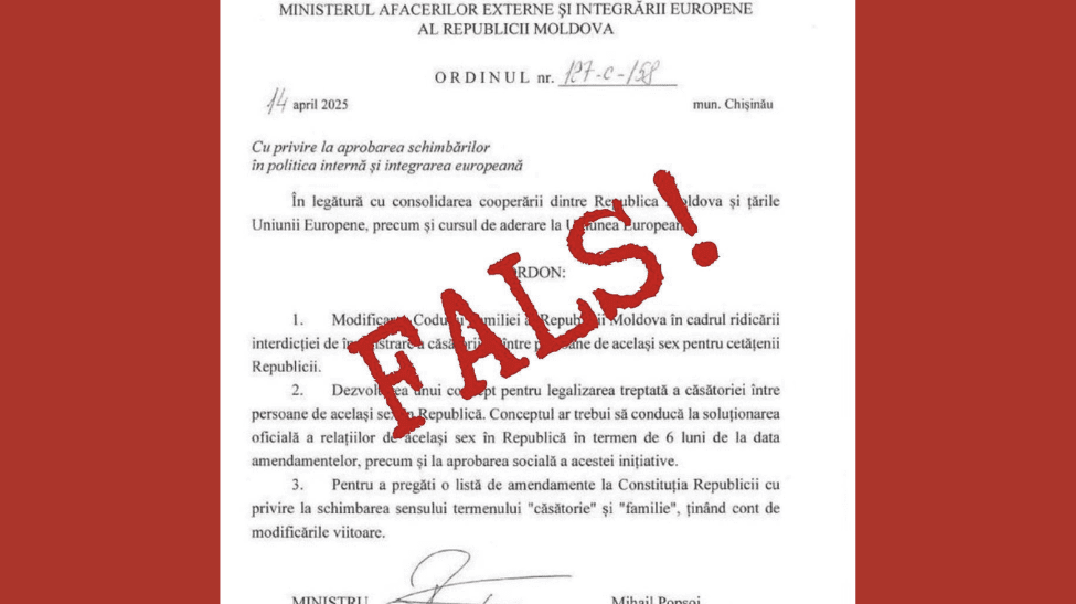 Министерство иностранных дел Молдовы выступило с официальным заявлением, в котором опровергло достоверность «приказа», якобы подписанного министром Михаем Попшоем 14 апреля 2025 года. По данным внешнеполитического ведомства, данный документ является подделкой. Его содержание содержит многочисленные элементы, противоречащие как действующему законодательству, так и полномочиям министерства. В связи с этим министерство призывает граждан проверять достоверность подобных документов исключительно […]