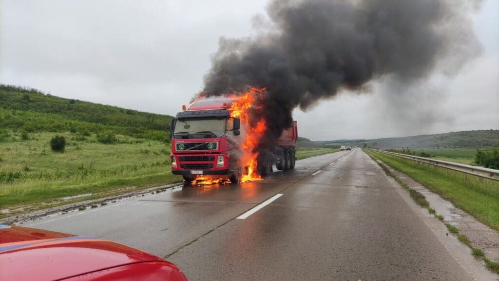 Пламя охватило кабину: в Каларашском районе сгорел грузовик