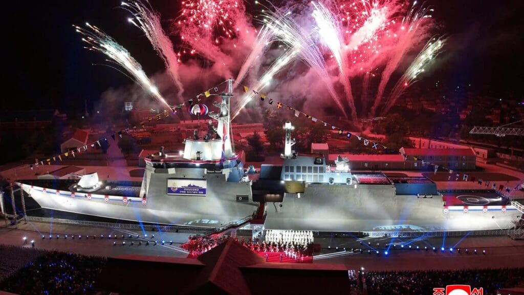 (ФОТО) Северная Корея успешно спустила на воду свой новый военный корабль — со второй попытки