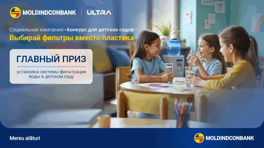 Moldindconbank в партнёрстве с шоурумом электроники и бытовой техники ULTRA запускают вторую волну кампании «Выбирай фильтры вместо пластика» — инициативы, которая продвигает использование фильтрованной воды и помогает сократить потребление одноразового пластика в детских садах Молдовы. В этом году кампания проходит в период с 14 июля по 15 сентября 2025 года в форме творческого конкурса для […]