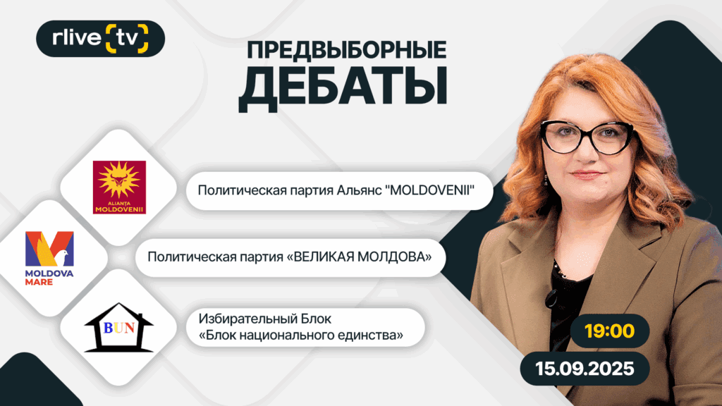 Сегодня, 15 сентября, в 19:00 на телеканале RLIVE TV пройдут дебаты, посвященные парламентским выборам 28 сентября. Редакция RLIVE TV отправила приглашения для участия в программе трем политическим конкурентам: Альянсу «MOLDOVENII» Партии «Великая Молдова» Избирательному блоку национального единства Дебаты будут организованы на русском языке, их проведет журналистка Лилия Бураковски. Формат дебатов: 1 минута — вступительное слово; […]