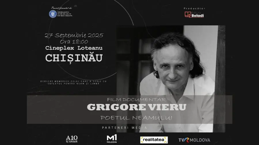 Жителей столицы приглашают в субботу, 27 сентября, в кинотеатр Cineplex «Loteanu», где в 18:00 пройдет премьера документального фильма «Grigore Vieru», посвященного жизни и творчеству одного из самых любимых поэтов народа. Вход свободный. Фильм создан командой кинематографистов из Румынии под руководством профессора Адриана Отовеску при поддержке сына поэта, Кэлина Виеру. Лента включает архивные кадры, интервью и […]