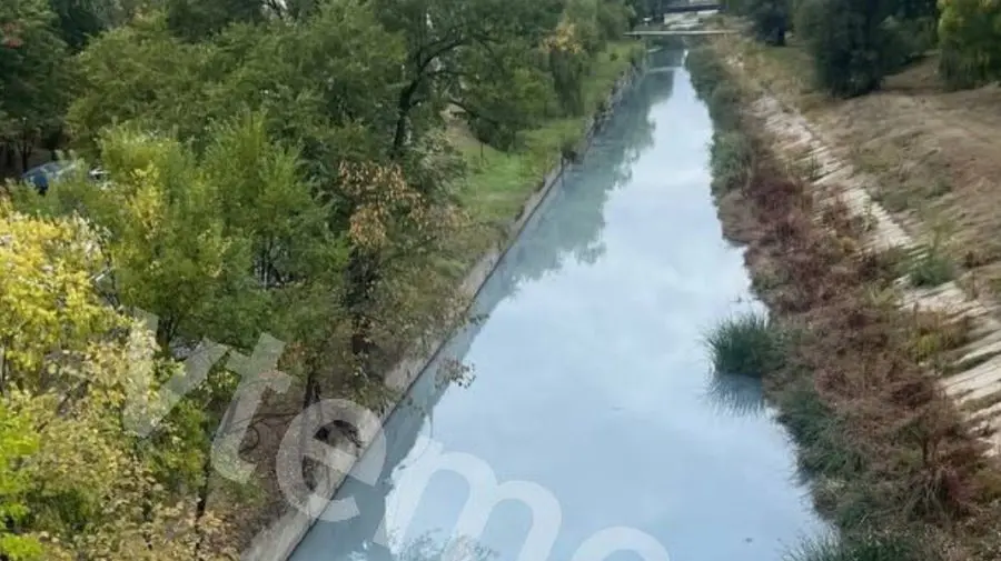 (ФОТО) Река Бык в Кишинёве окрасилась в синий цвет: заявление водоканала
