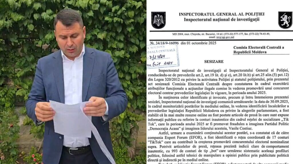 Лидер Партии «Демократия Дома» Василе Костюк публично отреагировал на жалобу, направленную Национальным инспекторатом расследований (INI) в Центральную избирательную комиссию (ЦИК) относительно предполагаемых нарушений в предвыборной кампании его партии. По словам политика, этот документ — «позорный акт», не имеющий прочной юридической основы. Более того, в Республике Молдова отсутствует возможность оплачивать политическую рекламу на платформе TikTok. Костюк […]