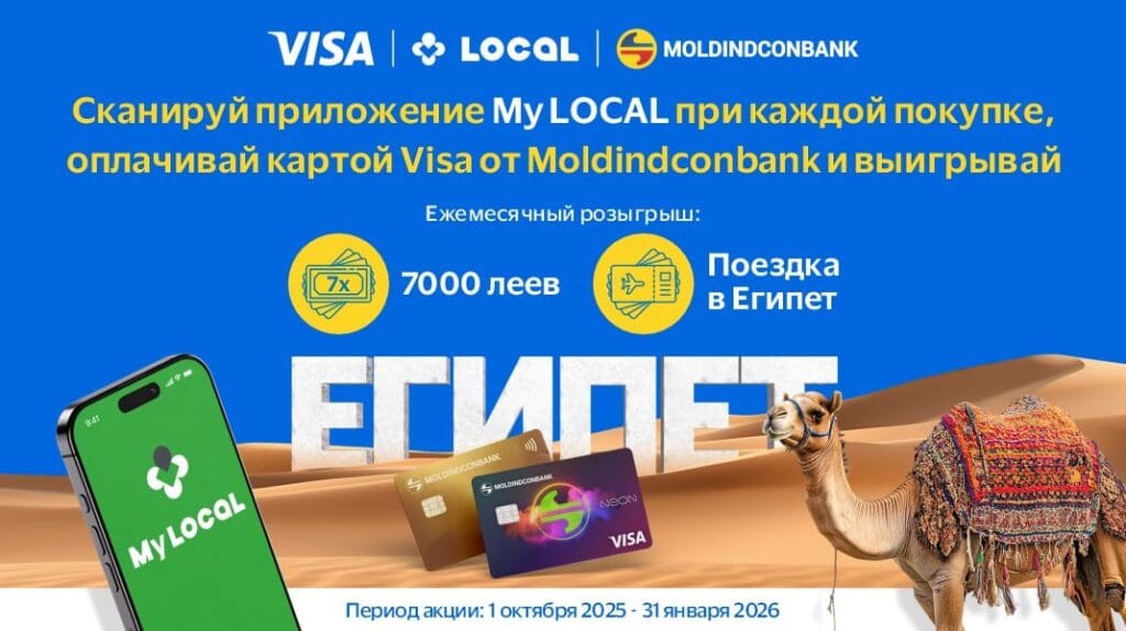 Делай покупки в Local, плати картой Visa от Moldindconbank и получай ежемесячные призы