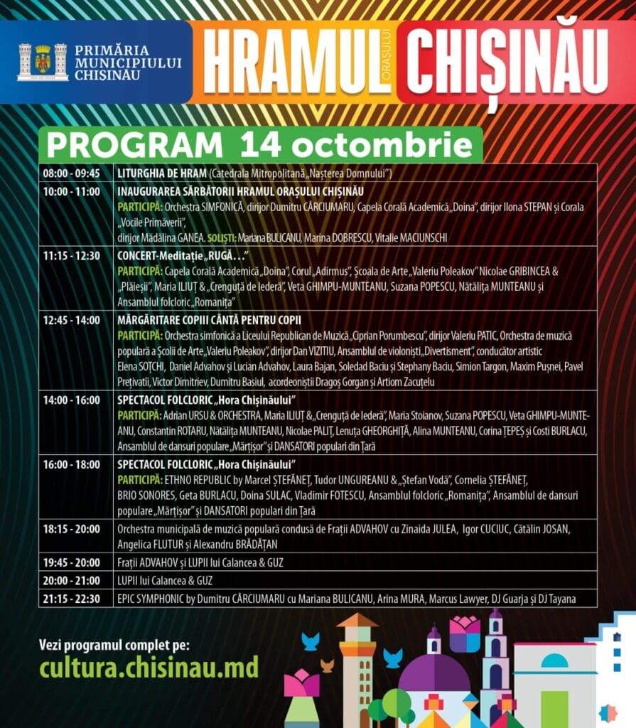 Сегодня — в День Кишинёва — муниципальные власти приглашают жителей и гостей столицы на праздничные мероприятия в Центр города. На главной сцене на Площади Великого Национального собрания оркестр Epic Symphonic под руководством дирижёра Дмитру Карчумару подарит грандиозное музыкальное шоу, где классическая элегантность переплетается с ритмами электронной музыки. Также на сцене выступят Оркестр братьев Адвахов, Lupii […]