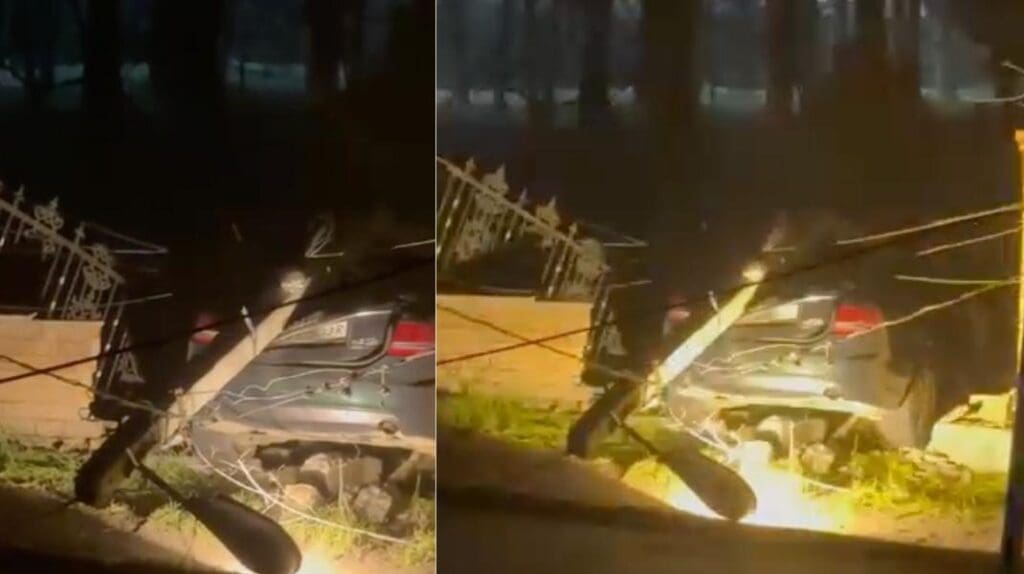 (ВИДЕО) ДТП на Ботанике — водитель врезался в забор и сбил фонарный столб