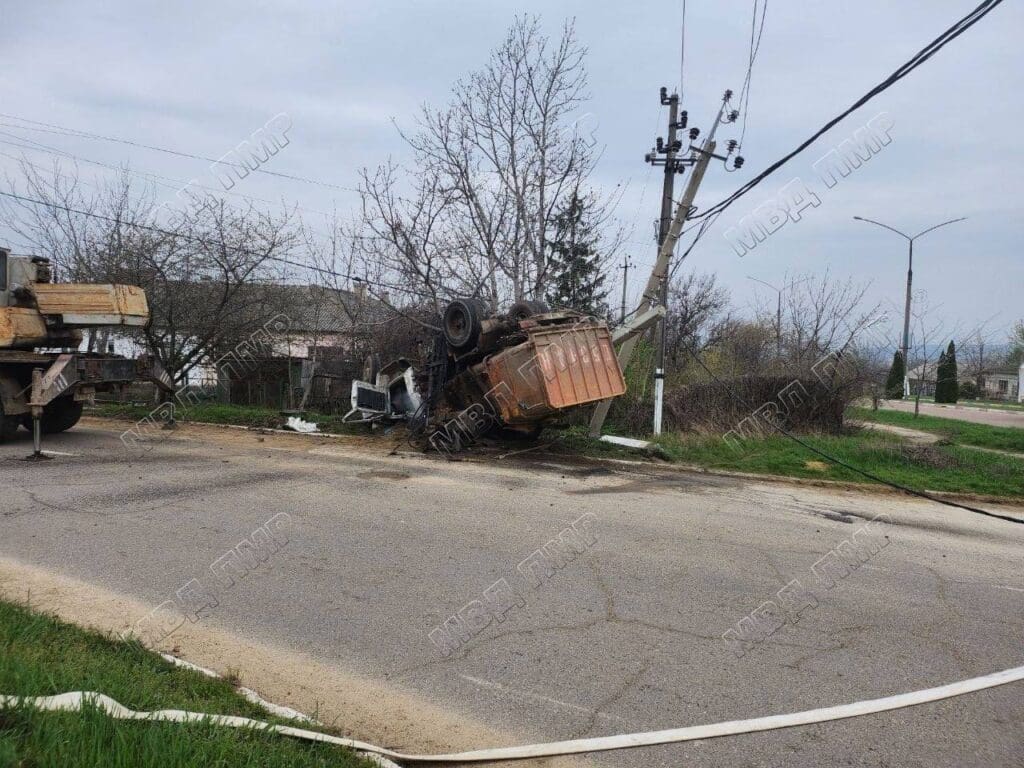 (ВИДЕО) Дубоссары: мусоровоз с газовыми баллонами врезался в столб