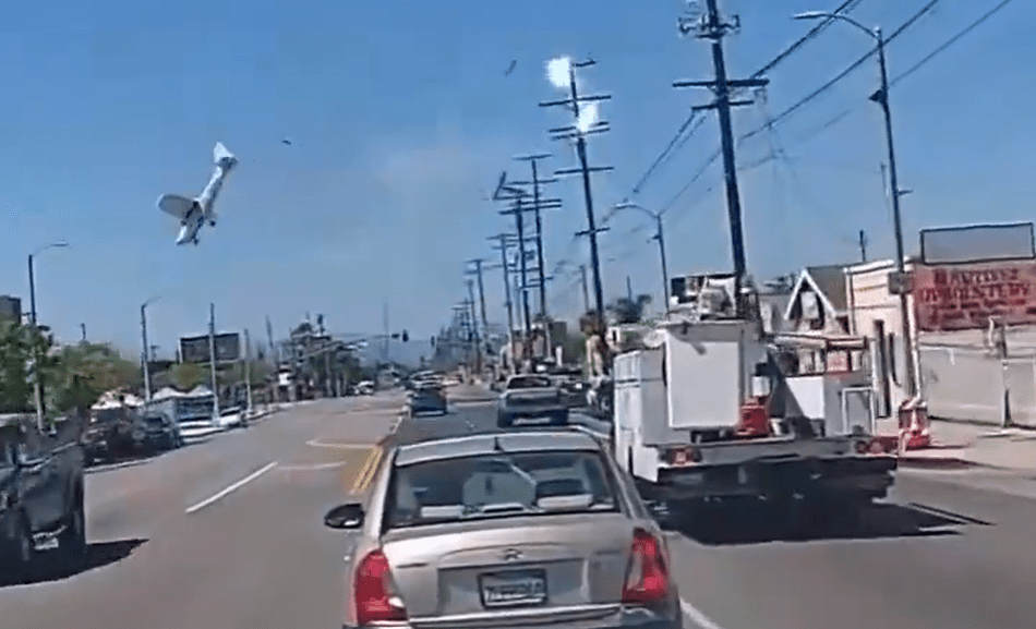 (ВИДЕО) В Калифорнии лёгкий самолёт задел линию электропередачи и совершил жёсткую посадку