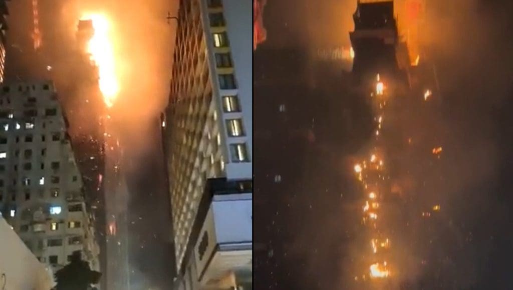 (ВИДЕО) В Гонконге загорелся строящийся небоскреб: двое человек пострадали