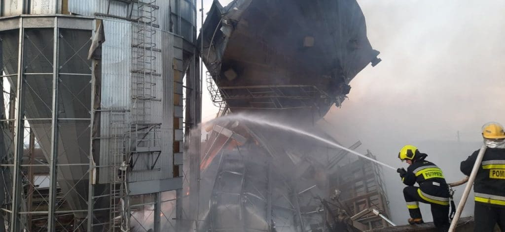 (ФОТО) Пожар в Джурджулештском порту: обрушился резервуар с шротом подсолнечника