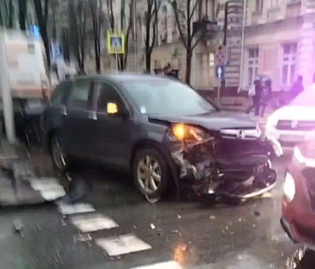 (ВИДЕО) Авария у мэрии Кишинева: два автомобиля столкнулись на перекрестке