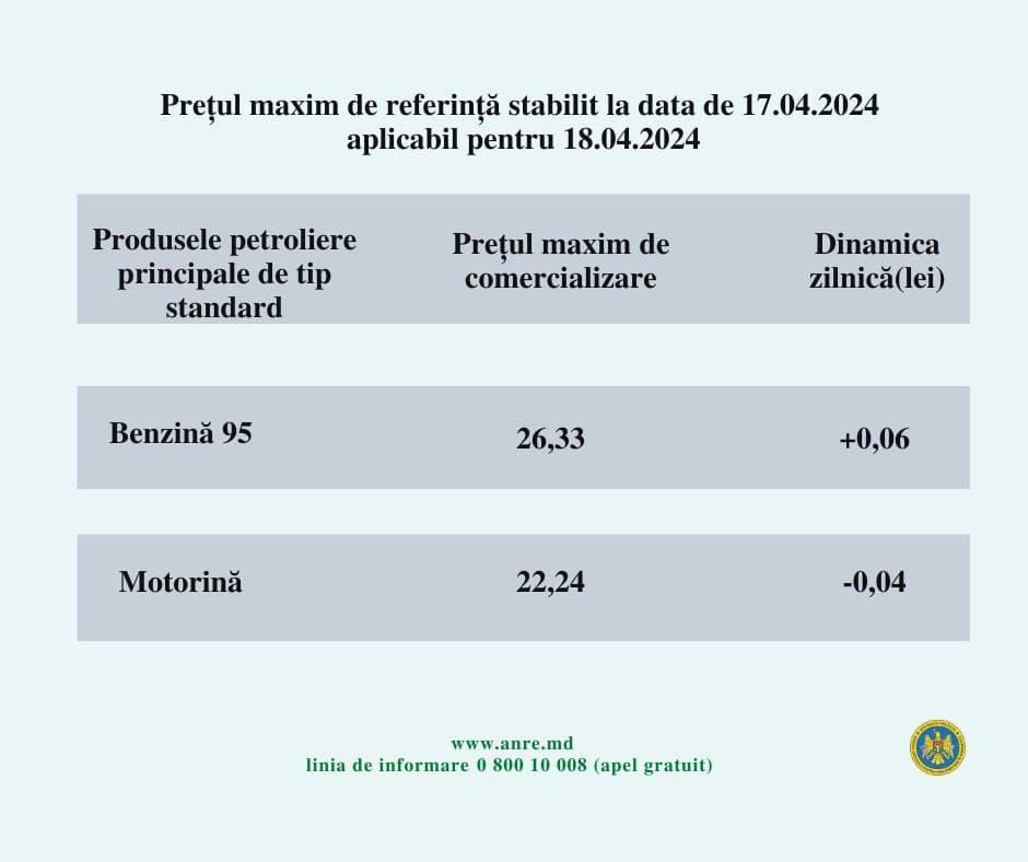 Так, бензин подорожает на 6 банов и будет стоить 26,33 леев.