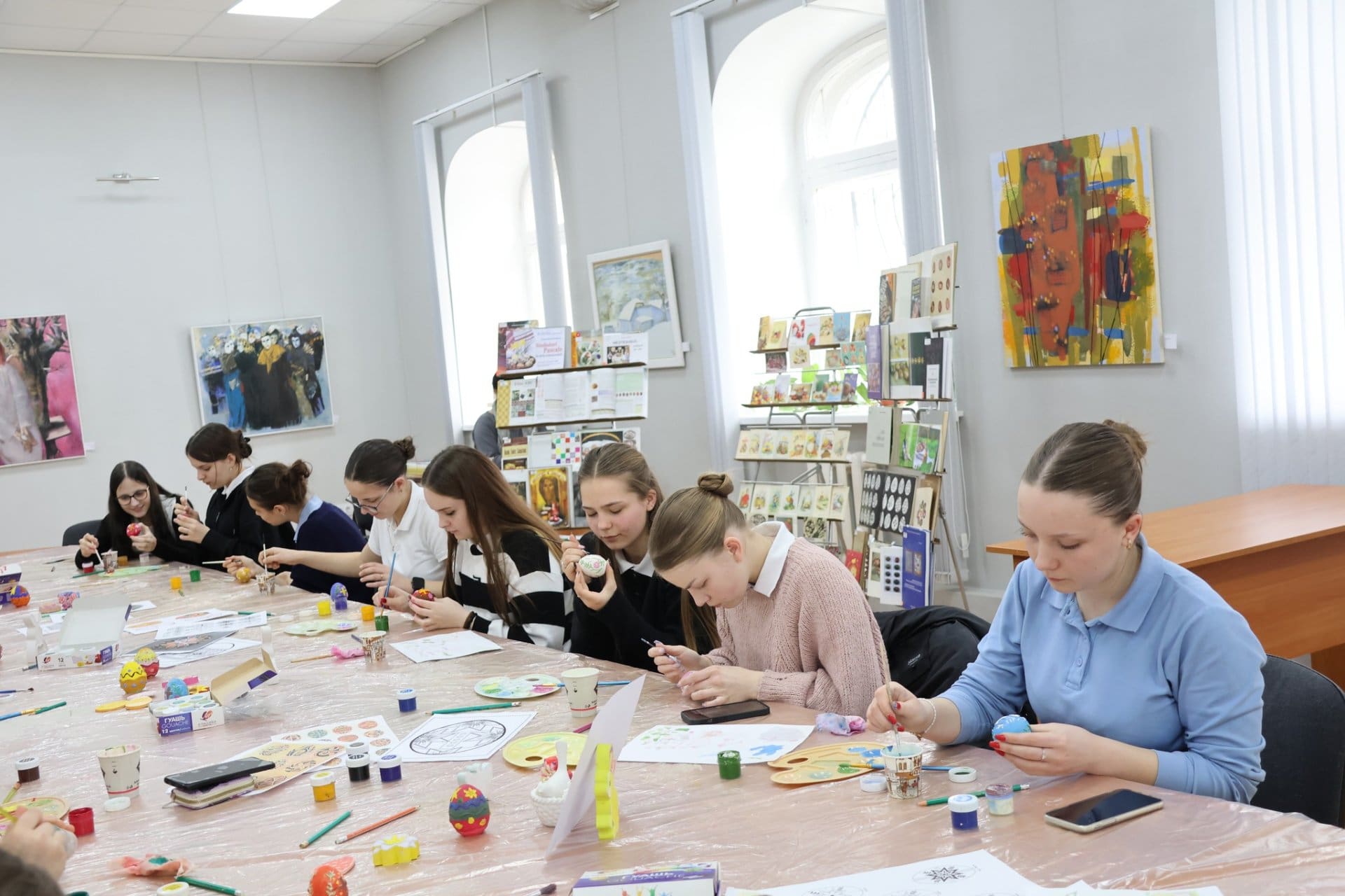Посетители смогут увидеть художественные изображения пасхальных мотивов — от икон до расписных яиц, традиционных тканей и современных графических работ.