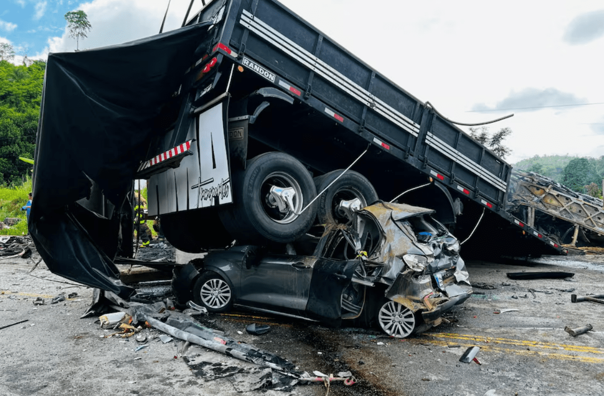 Автобус, перевозивший 45 пассажиров, потерял управление после разрыва шины и врезался в грузовик, перевозивший черепицу. Инцидент произошел в 4 часа утра возле города Теофило Отони в штате Минас-Жерайс.
