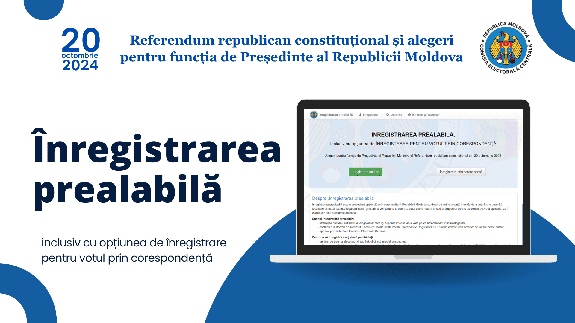 ЦИК напомнил, что избиратели, которые будут находиться за границей в день республиканского конституционного референдума и президентских выборов 20 октября 2024 года, могут зарегистрироваться заранее на онлайн-платформе „inregistrare.cec.md”.
