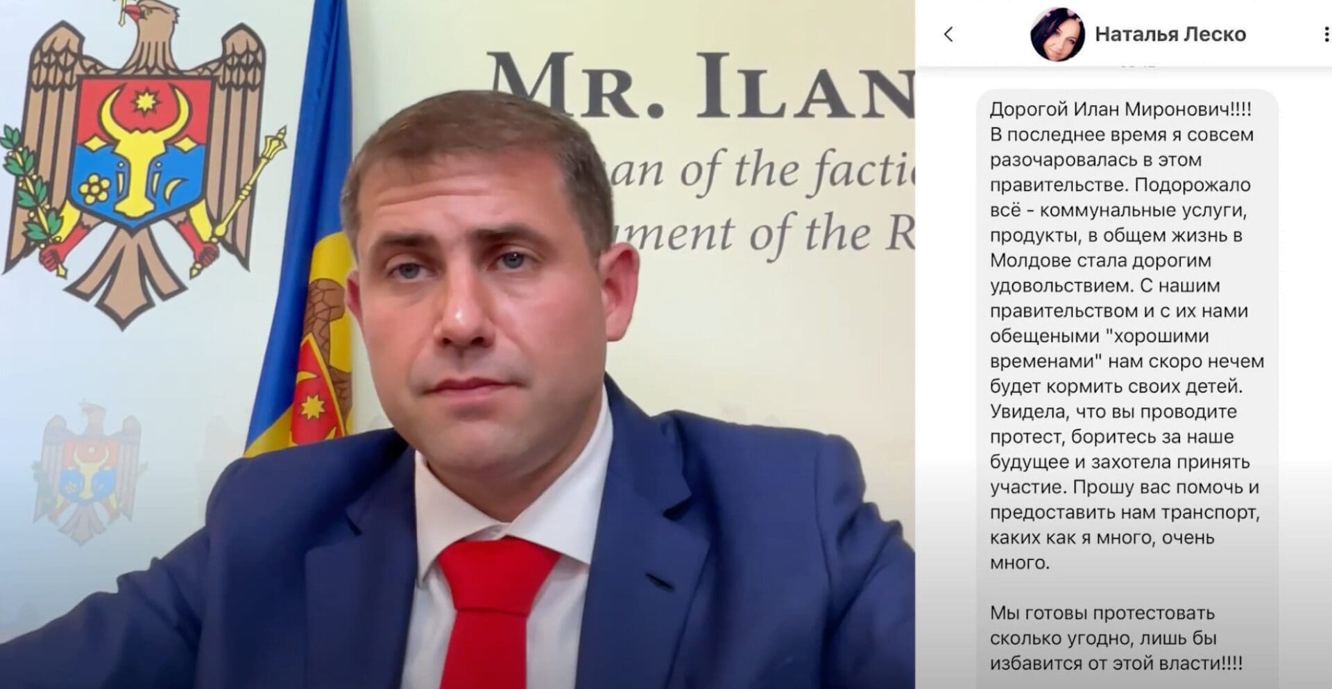 «Я получаю в день сотни сообщений о том, что люди доведены до отчаяния. Они мне пишут, что не имеют средств на пропитание. Люди хотят протестовать, они понимают, что это последний наш шанс избавиться от этой ничтожной, гнусной и тупой власти. Люди хотят приехать, но у них нет денег ни на дорогу, ни на то, чтобы даже попить воды. Дорогие друзья, все те, кто понимают и согласны с тем, что этот негодяйский режим должен немедленно подать в отставку, я найду возможность и передам вам средства для того, чтобы вы смогли расплатиться за транспорт до Кишинева и купить себе водичку и бутербродик», — заявил Илан Шор.