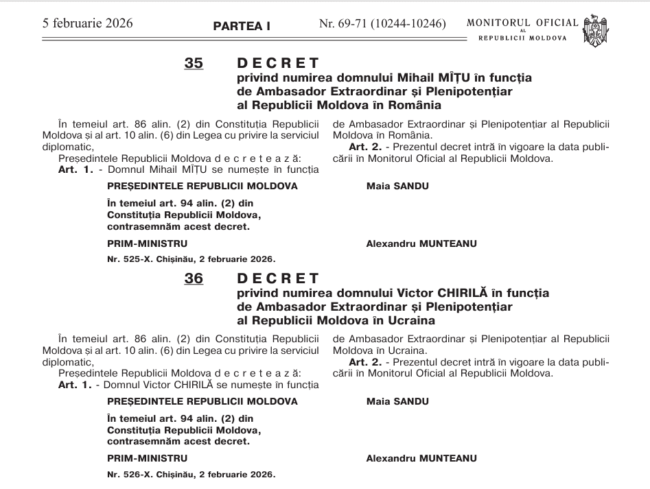 Так, Виктор Кирилэ займёт пост посла в Украине, а Михаил Мыцу — в Румынии.