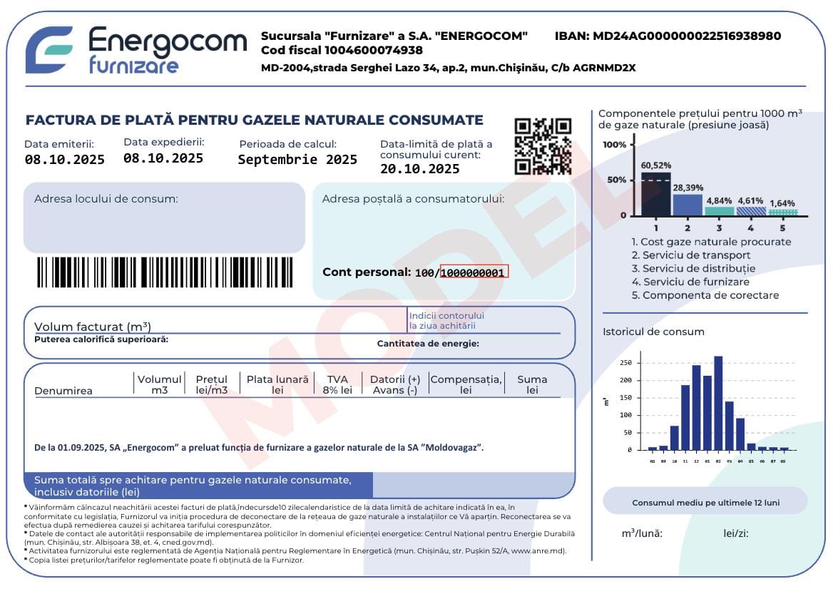 С 1 сентября 2025 года Energocom полностью взяла на себя функции поставщика природного газа в рамках обязательств по оказанию услуги общественного интереса и поставщика последней инстанции. Компания начала выставлять первые счета за потребление в сентябре, начиная с 6 октября. Процесс выставления счетов остаётся без изменений.