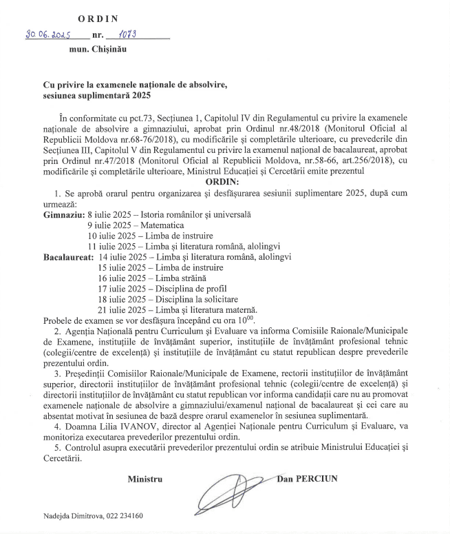 Министерство образования объявило о проведении дополнительной сессии национальных экзаменов для выпускников гимназий и старшеклассников, не сдавших экзамены в основной июньской сессии 2025 года.