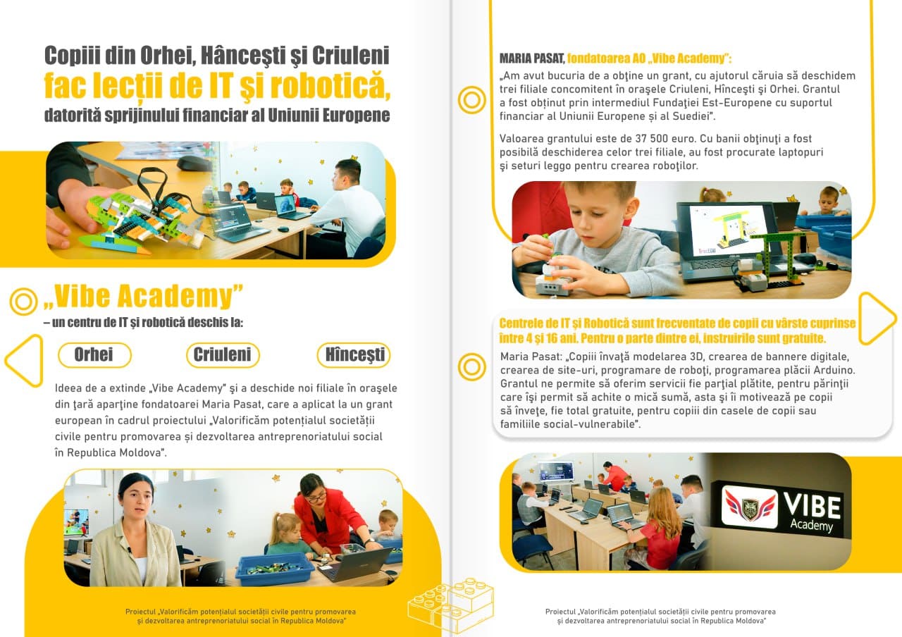Проект «Использование потенциала гражданского общества для продвижения и развития социального предпринимательства в Республике Молдова» стартовал 1 января 2022 года и продлится до 31 декабря 2024 года. За этот период в развитие социального бизнеса было вложено 1 123 000 евро.