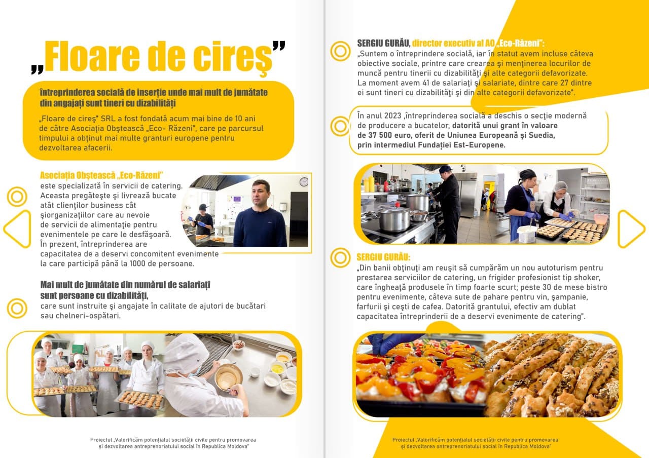Эти социальные предприятия вносят вклад в развитие общества и местных сообществ Молдовы, демонстрируя пример предпринимательства, которое ориентировано не только на получение прибыли, но и на улучшение благосостояния общества.