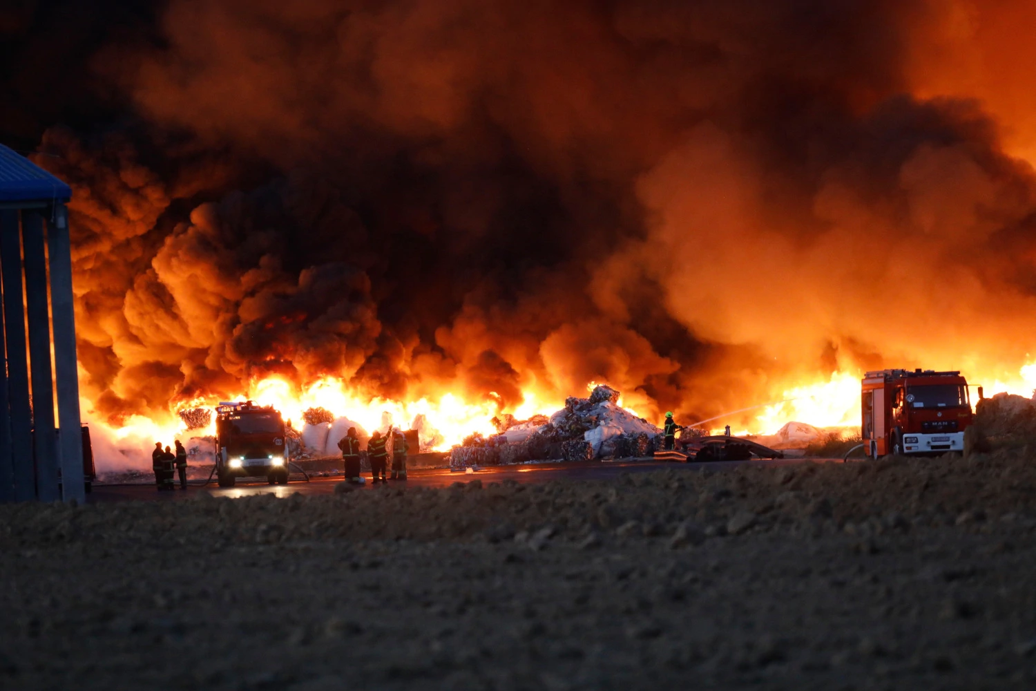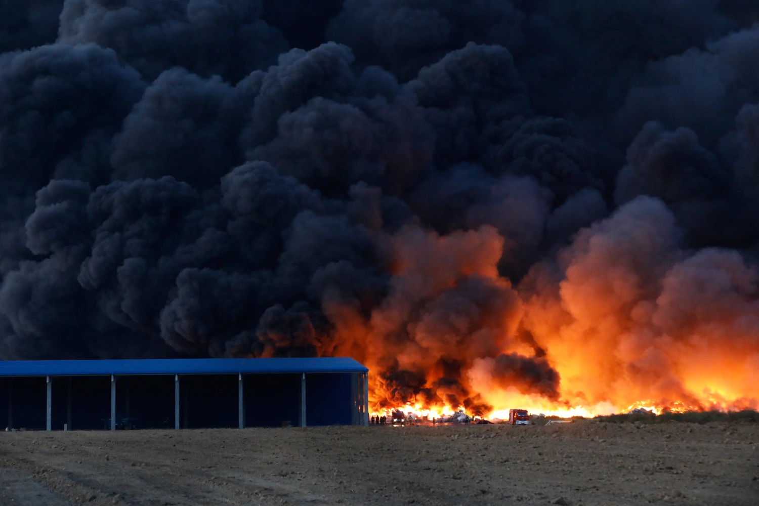 Сильный ветер способствовал распространению дыма. При сжигании пластмассы выделяются токсичные вещества, но уровень загрязнения воздуха пока не ясен.