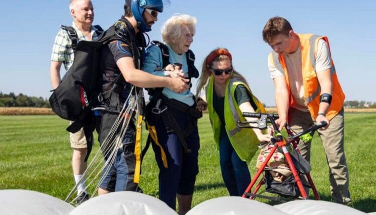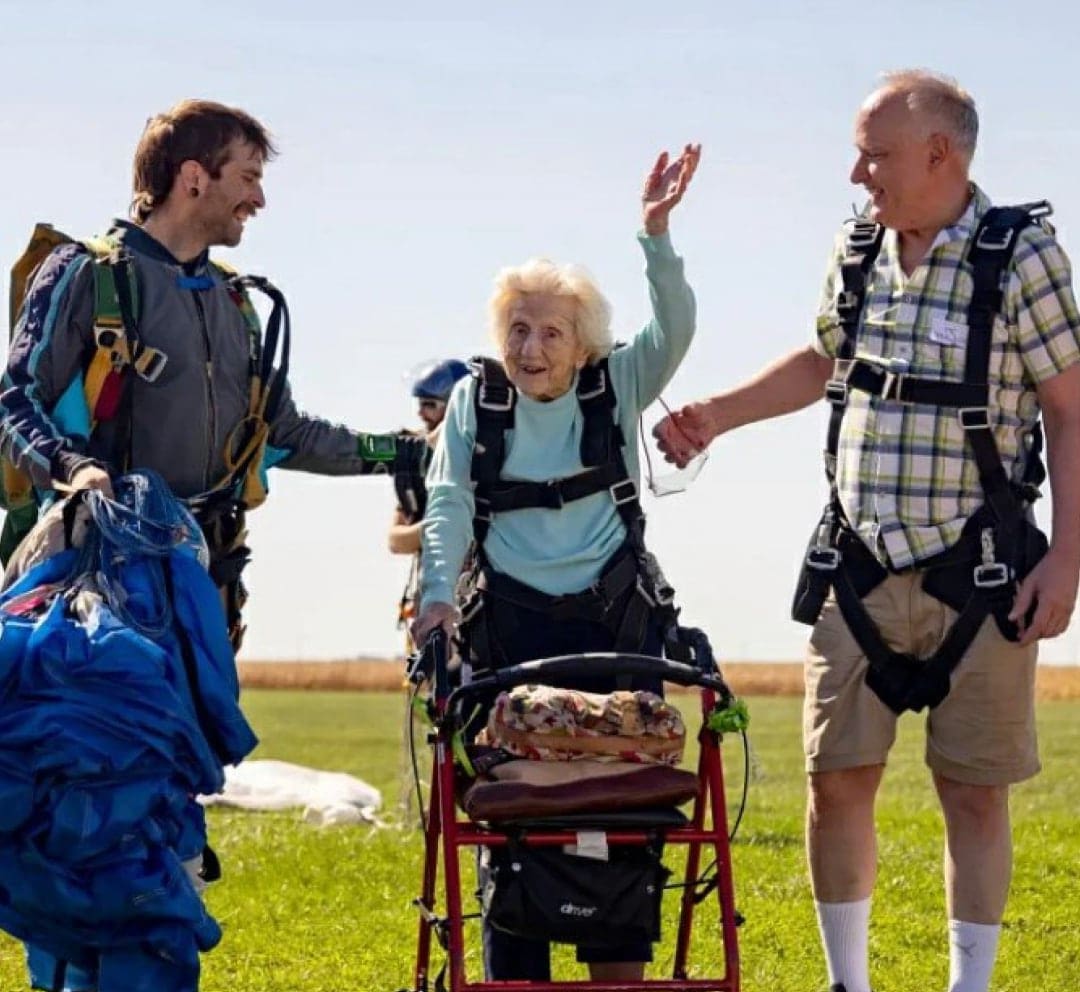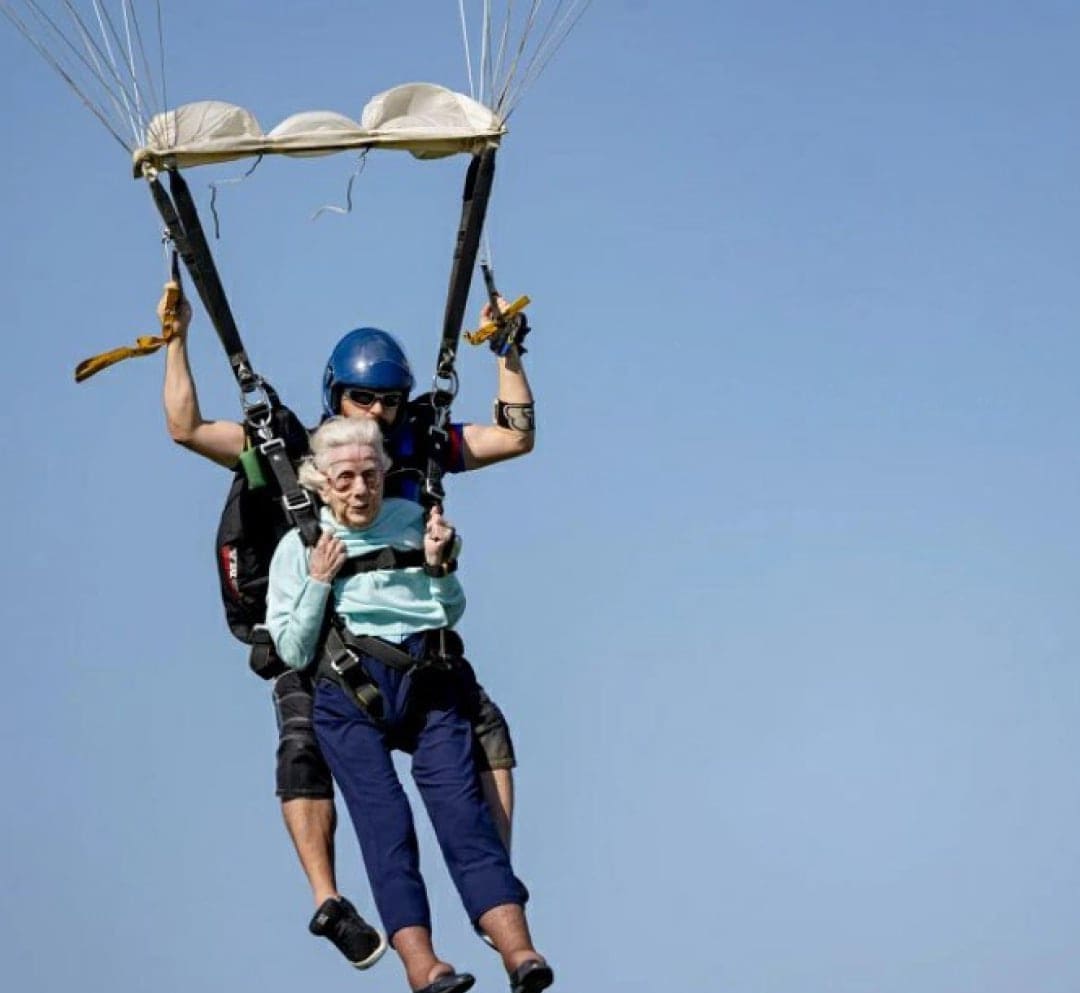 «Возраст — это всего лишь число», — сказала Хоффнер ликующей толпе сразу после приземления. Первый свой прыжок с парашютом она совершила в 100 лет.