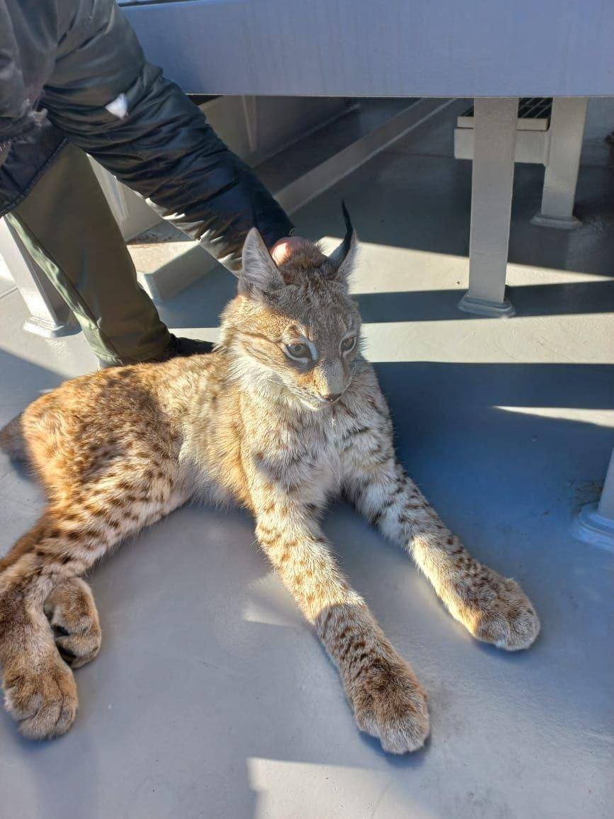 Чтобы перевезти животное на берег, специалисты ввели рысь в состояние наркоза. Как лесной зверь оказался на 250-метровом судне, стоявшем посреди бухты, пока неизвестно.