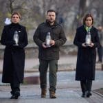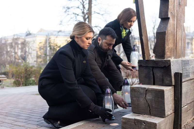 Утром 21 ноября Владимир и Елена Зеленские вместе с Майей Санду почтили память погибших во время Революции достоинства.