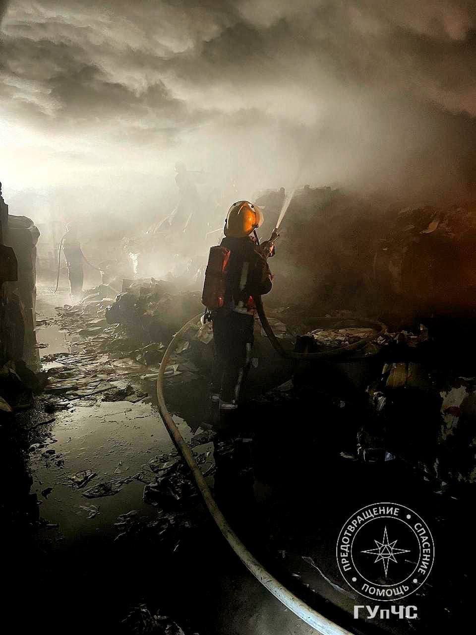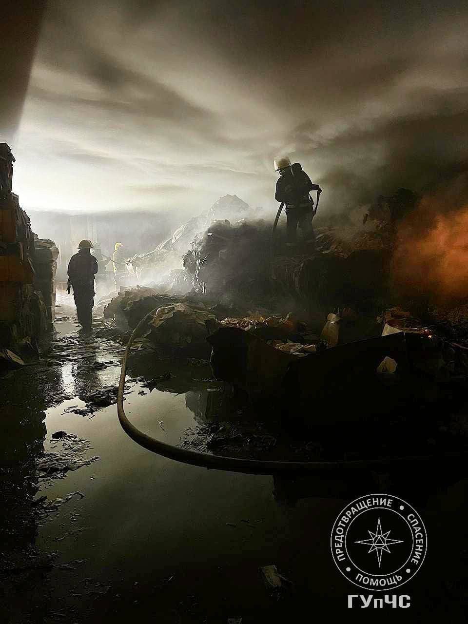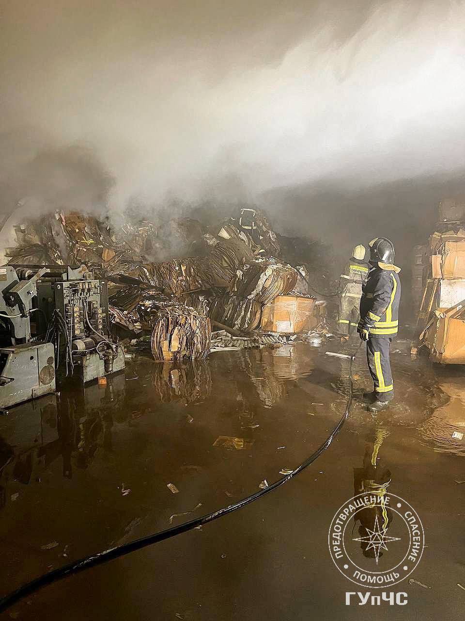 Тлели 20 тонн макулатуры на складе площадью 300 квадратных метров. Помещение было сильно задымлено. Возгорание тушили три пожарных расчета.