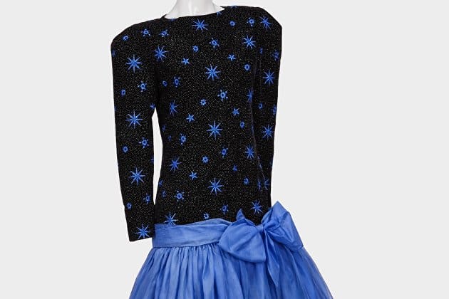 Речь идет о черном бархатном платье бренда Jacques Azagury с вышивкой в виде звезд синего цвета, в котором принцесса появилась дважды: во время тура в Италии в 1985 году, а затем на концерте симфонического оркестра в Ванкувере в 1986 году.