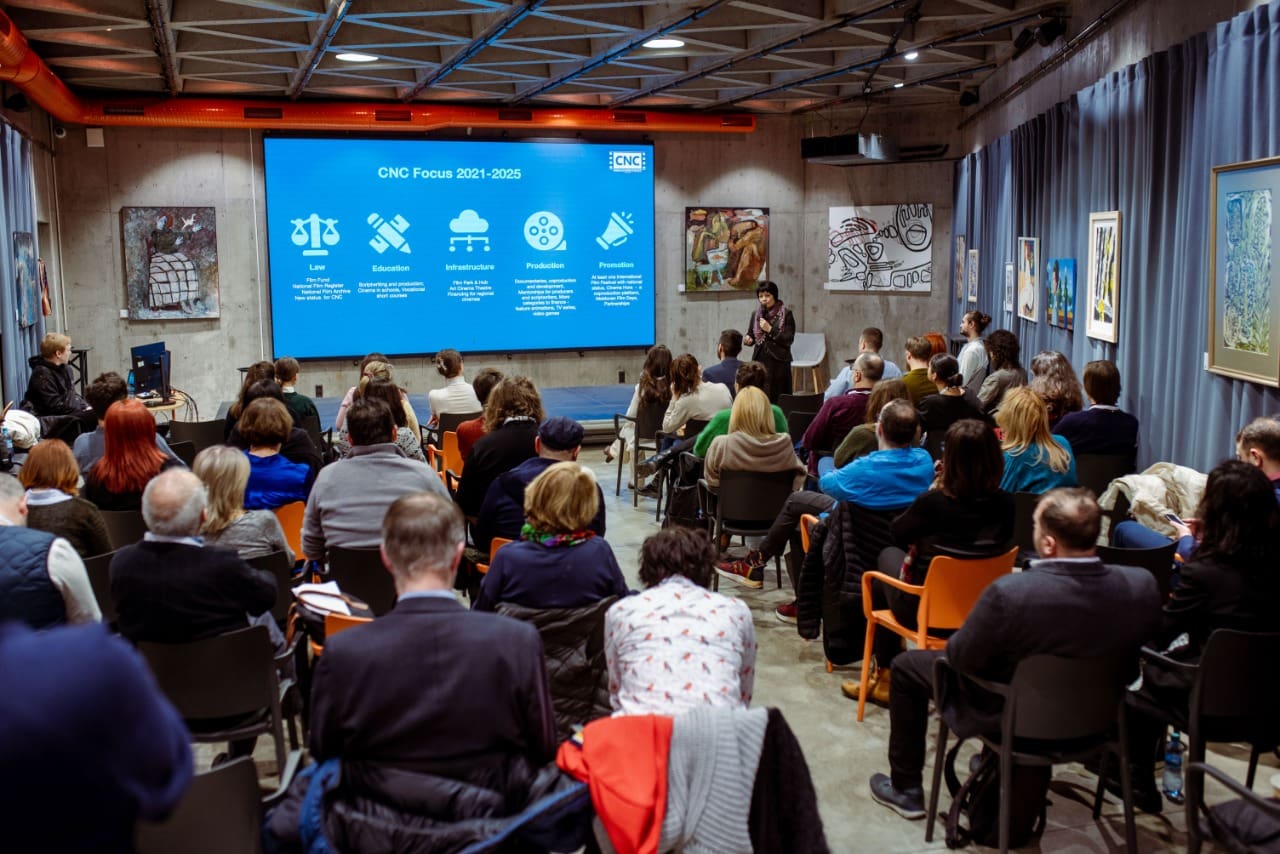 В первый день мероприятия в парламентском зале «Европа» состоялось несколько сессий, в ходе которых работники киноиндустрии, прибывшие в Молдову, рассказали о международной кинематографической экосистеме, успешном сотрудничестве, проблемах и возможностях.