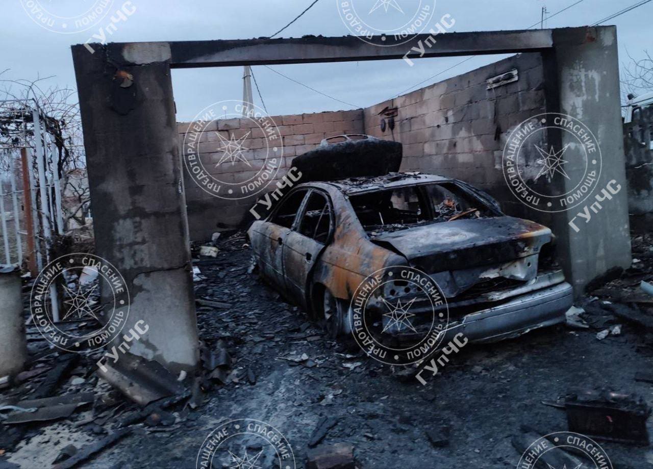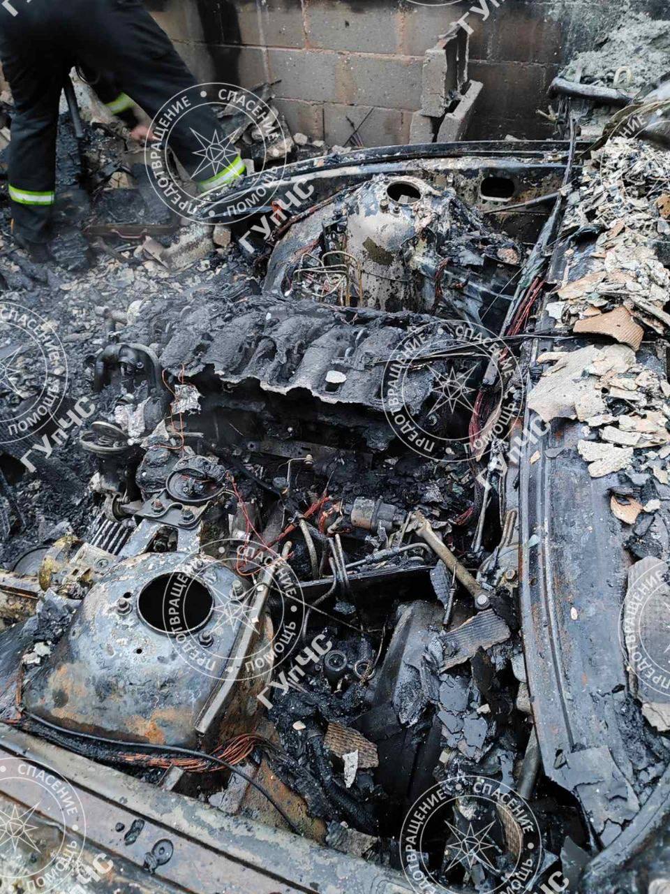 Гараж и автомобиль сгорели полностью.