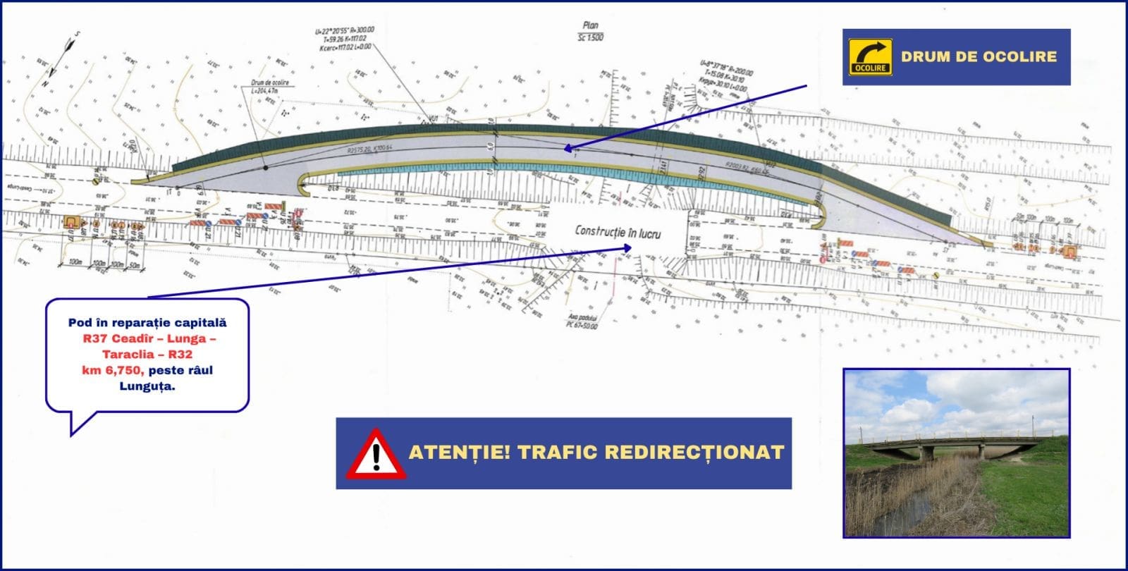 Национальное администрация дорог (НАД) объявляет об ограничениях движения на дороге республиканского значения R37 в районе Кортен, района Тараклия. С 21 апреля, движение будет перенаправлено на временную объездную дорогу для начала капитальных ремонтных работ на мосту, расположенном на 6,75 километре.