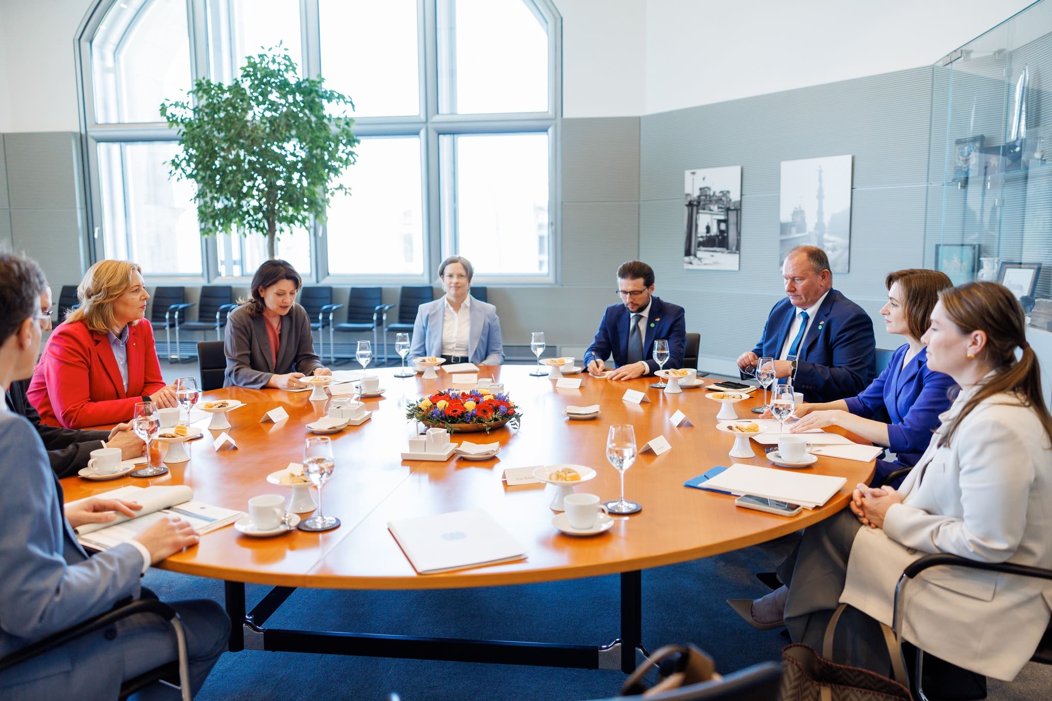 «Германия является сильным и важным союзником Республики Молдова на пути к Европейскому Союзу, демократии и процветанию. Сегодня в Берлине я пообщалась с президентом Франком-Вальтером Штайнмайером, канцлером Олафом Шольцем, спикером законодательного собрания Бербелем Басом и членами парламентских комиссий по иностранным и европейским делам. В частности, мы обсудили сотрудничество в экономической сфере, которое поможет нам развивать экономику и создавать безопасные и хорошо оплачиваемые рабочие места», — написала глава государства на своей странице в Facebook.