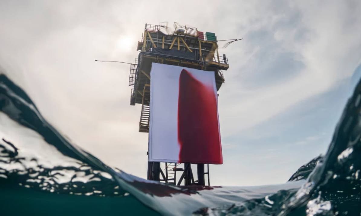 Greenpeace организовал арт-протест на платформе Shell Skiff. Активисты установили на газодобывающей платформе в Северном море большое полотно с произведением Аниша Капура «Зарезанный».